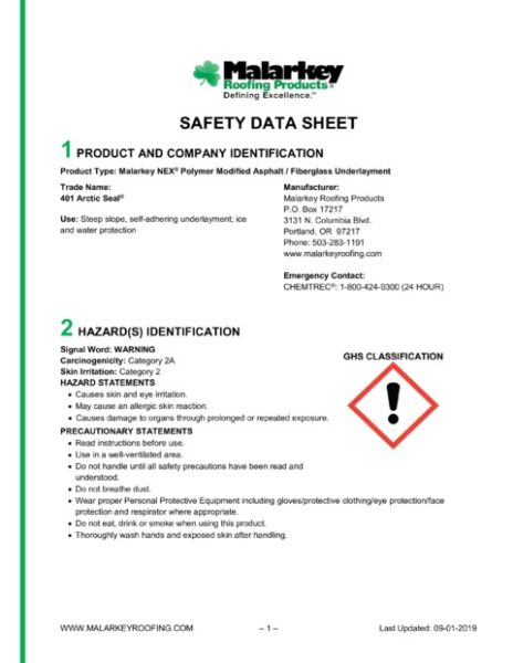 401 Arctic Seal® is eligible for expanded warranty coverages relative to its use as a single roofing accessory or in combination with others in a complete Malarkey roofing system. Installed separately, it carries a 10-year product warranty against manufacturing defects. Contact Malarkey’s Technical Services Department for details.